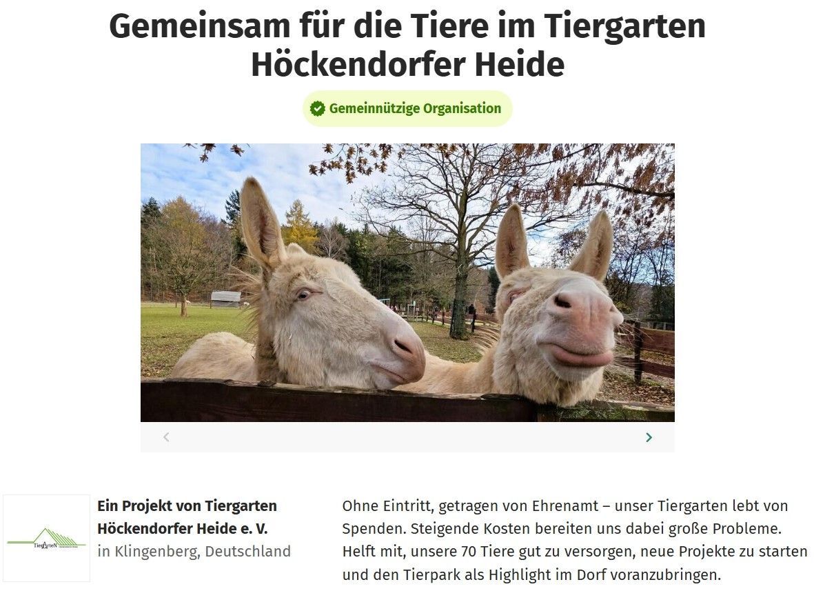 Besonders überrascht waren wir, dass selbst nach Erreichen des Funding-Ziels weiter gespendet wurde. So können wir zusätzlich in die Umgestaltung der Tiergehege und Verbesserung der Haltungsbedingungen investieren – z. B. in den Bau einer überdachten Futterraufe für die Esel oder neue Bepflanzungen.